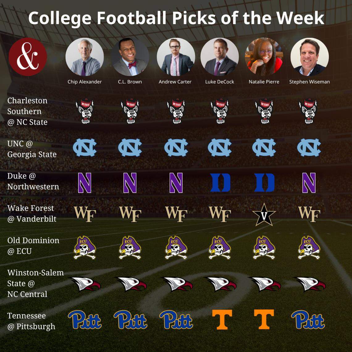 This story was originally published September 7, 2022 at 5:10 AM with the headline "N&O’s college football picks for North Carolina schools and Tennessee vs Pittsburgh."