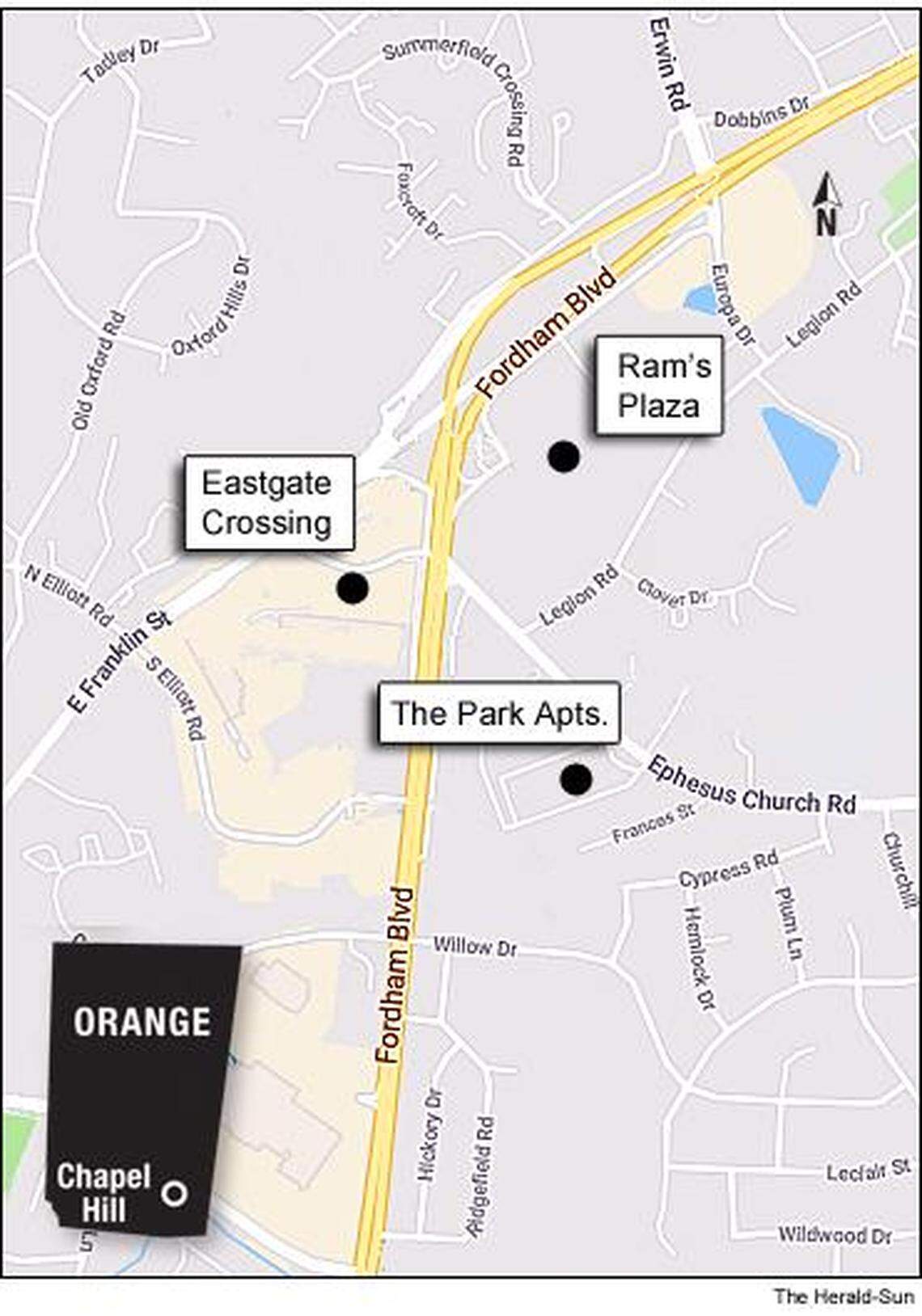 The Park’s last leases expire June 30, Woodfield Development partner Scott Underwood said. Construction could begin soon after, at the same time as the town proceeds with a extension of South Elliott Road. The extension will cross Fordham Boulevard and link to a planned roundabout at Ephesus Church Road and a realigned driveway at Kings Arms Apartments.