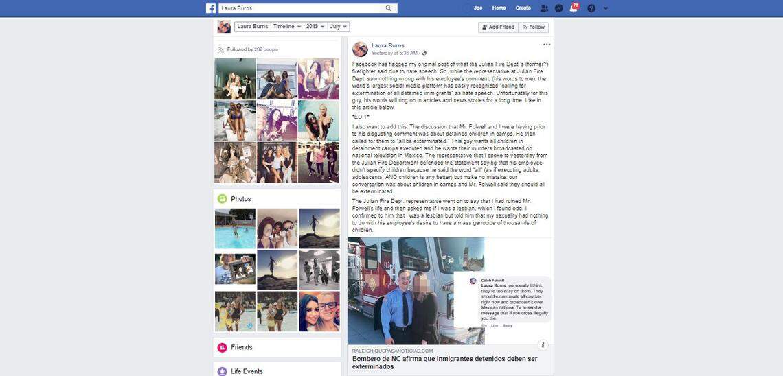 Caleb Folwell, who also had volunteered with the Julian Fire and Rescue Department in southern Guilford County, said in a public Facebook post that migrants housed along the U.S.-Mexico border in custody should be “exterminated.”