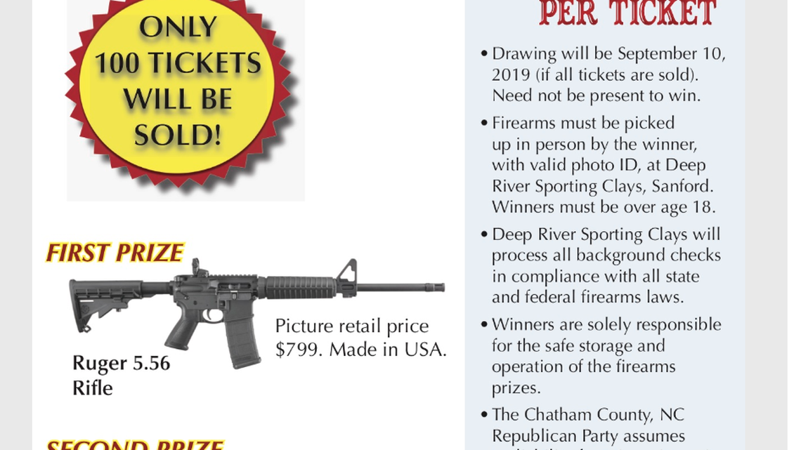 The Republican Party had announced plans to sell 100 $50 tickets to win either a Ruger 5.56 rifle or a Mossberg 12 gauge shotgun during a Sept. 10 meet-the-candidates event at Fearrington Village outside Pittsboro.