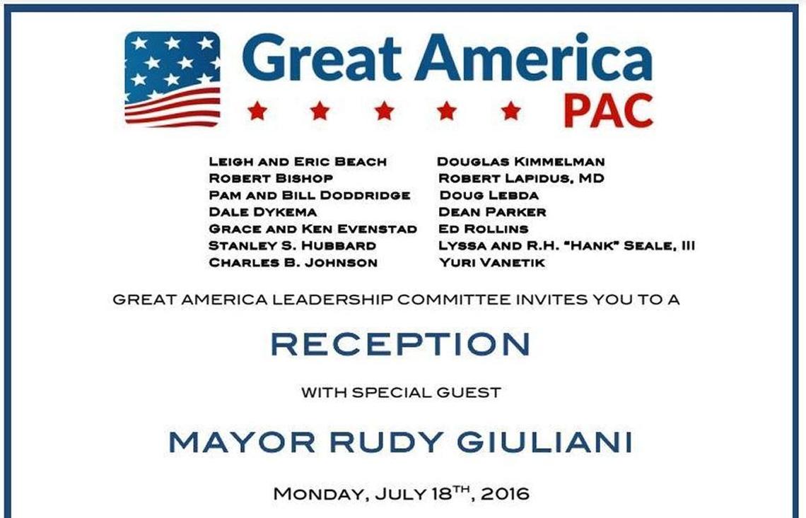 Then there’s the fact that during the Republican convention in Cleveland in 2016, Vanetik’s name appeared on an invitation to a private reception with former New York Mayor Rudy Giuliani, a high-profile surrogate for candidate Donald Trump. Vanetik is listed as one of 14 members of a leadership committee for the Great America PAC, the largest pro-Trump PAC in the last election, which reported it raised more than $30 million.