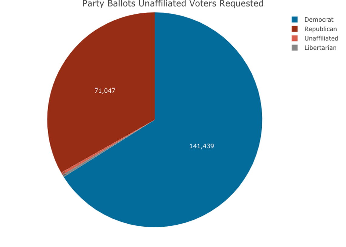 And while the number of unaffiliated voters has risen since 2016, most unaffiliated voters cast ballots in the Democratic primary.