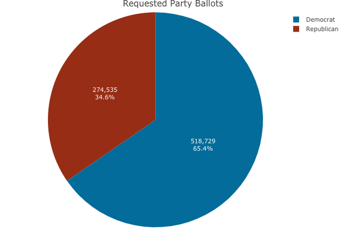 More than half a million people voted in the Democratic primary, while some 274,000 cast a Republican ballot, according to the latest numbers.