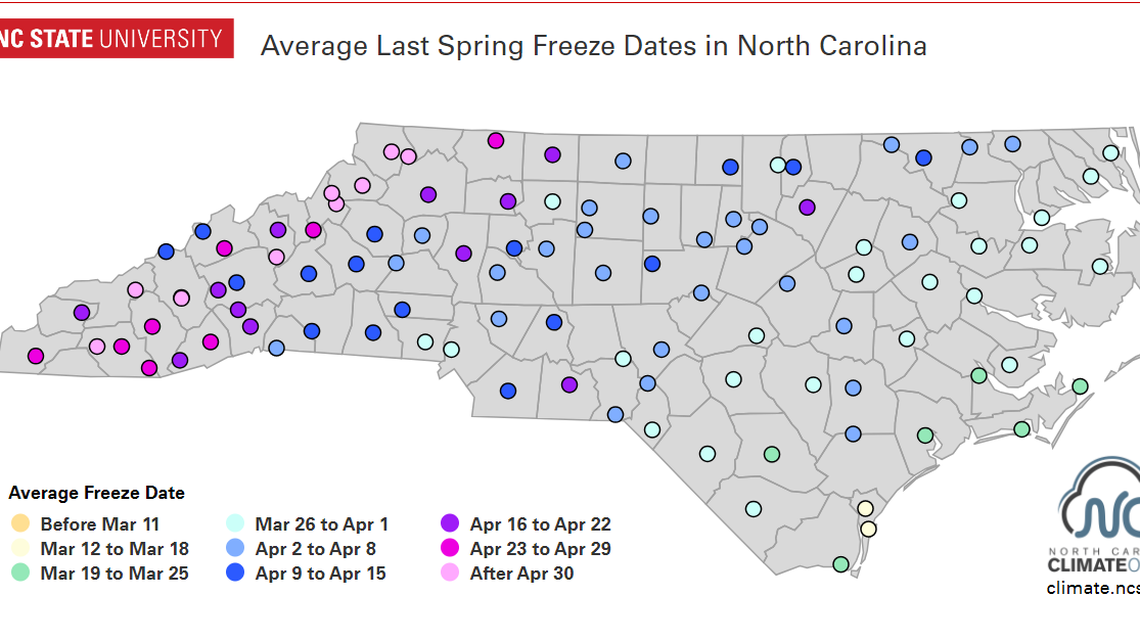 Though he says the average last frost date for the Triangle is April 3, he also looked up the date of the latest last freeze on record: May 10, 1977, when the temperature fell to 32 degrees at RDU International Airport.