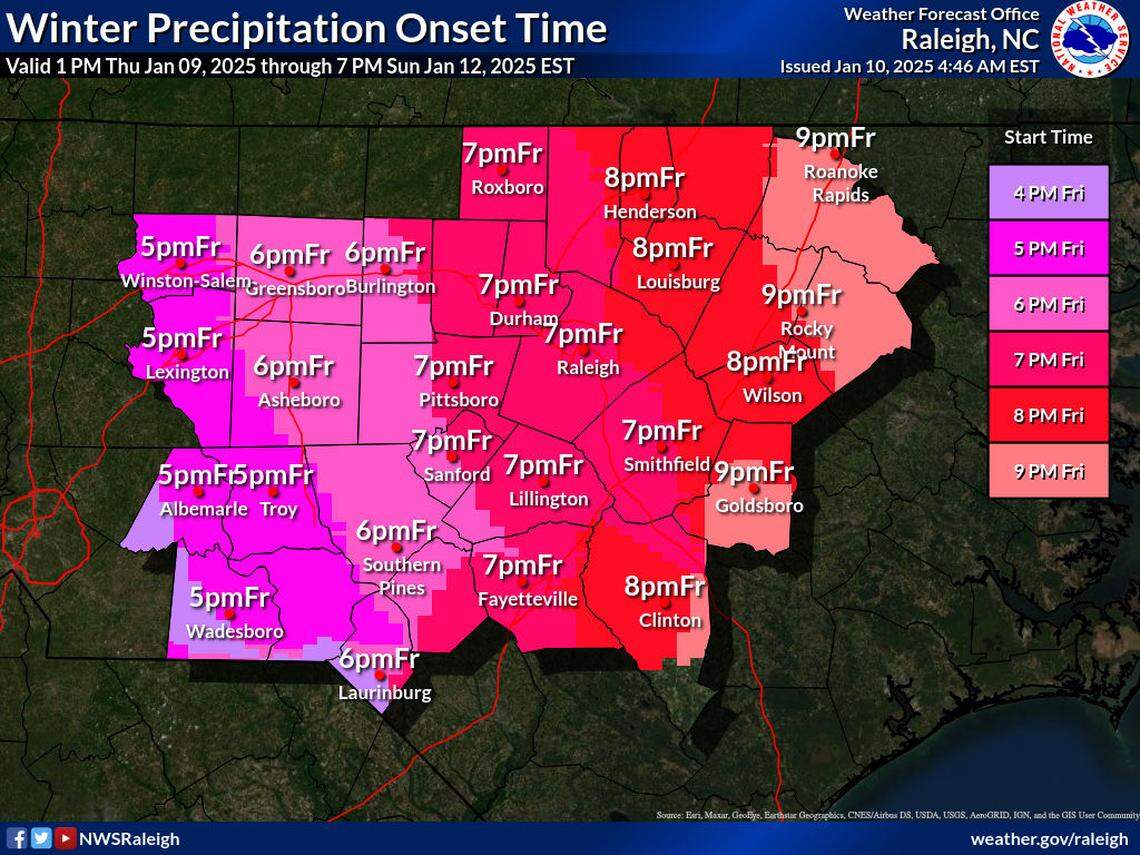 This story was originally published January 10, 2025 at 7:00 AM with the headline "When does snow (& ice) start on Friday and how much will Raleigh get? Latest NC forecast."